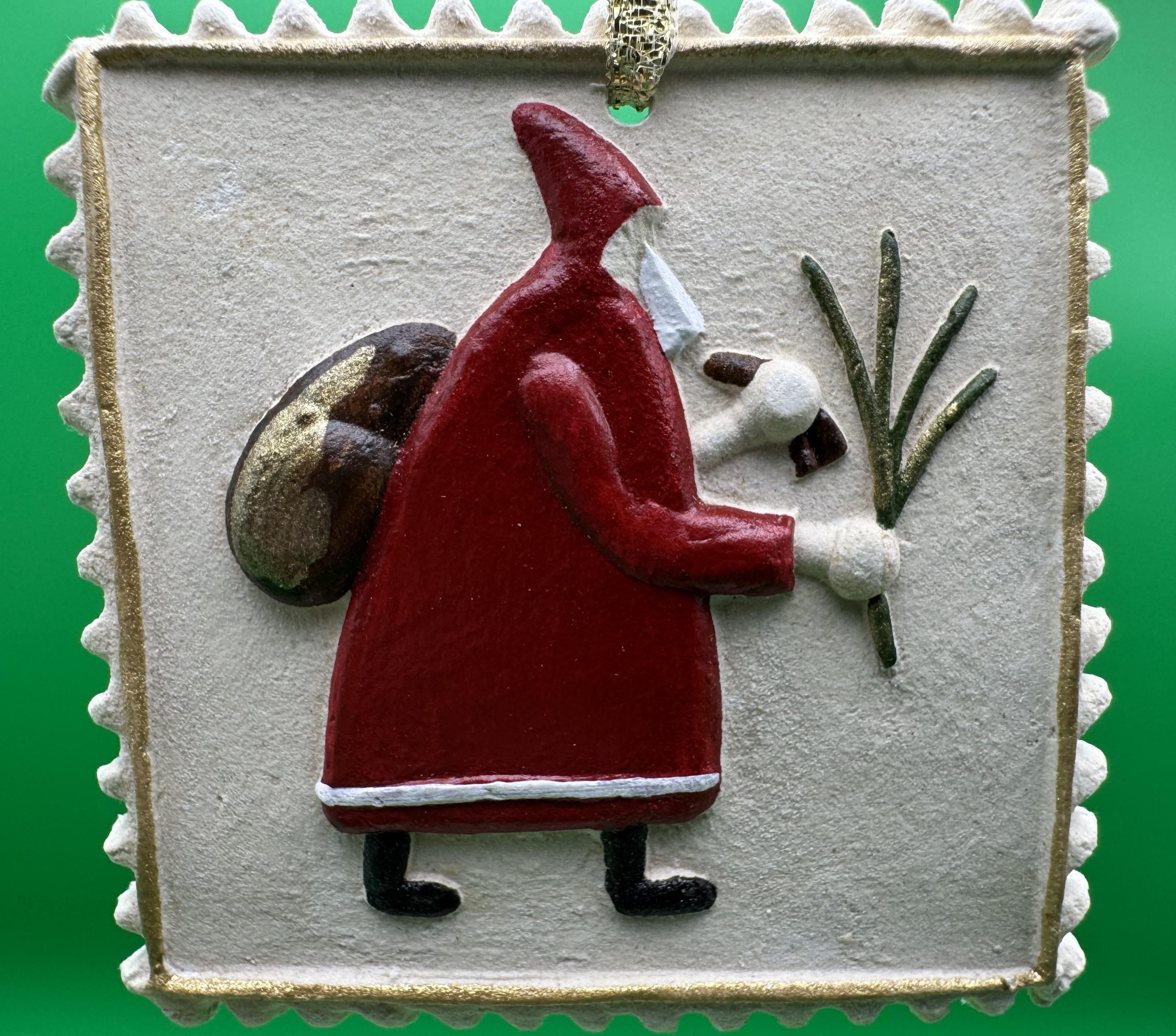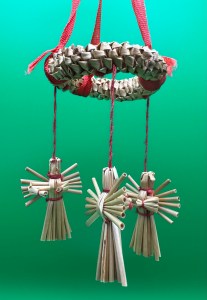 Yes – yes it is. A dreidel is a 4-sided top used in a traditional game of chance played during the 8-night celebration of Hanukkah. It has become one of the symbols of this holiday. Sarah, who has Jewish roots and loved to play dreidel, is greatly amused that there is a dreidel Christmas tree ornament. When she was little, December was both Christmas (strictly secular–she didn’t actually know the Christmas story until she was about 6) and Hanukkah. Though the Hanukkah celebration included a gift for each night, what she remembers most is lighting the menorah, an 8-branched candelabra plus one spot for the shamash, the candle used to light the others. She remembers with great clarity the large Star of David menorah that her father carved from styrofoam when she was little. It held full-size candles that made the blue foil on the Star of David shimmer. Each night one of her parents would say a special prayer and then light the candles – one the first night, two the second – until all 8 were lit on the final night. This ornament is a link between Hanukkah and Christmas, both of which we celebrate, and which does continue to include games of dreidel.