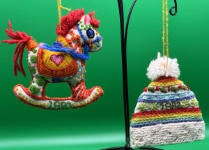 The hat I made for myself. It had a pair of matching mittens which belonged to Stephen’ s Dad. These ornaments came as small embroidery kits. They were on sale because they were last year’s designs. I find it a bit odd that Christmas ornaments and decor have “trends” such as rustic plaid one year, bright red and green the next, metallics another, but they do. In this case, it worked in my favor. I was able to save money and indulge in one of my favorite hobbies – needlework. And, despite being designs from 1979, I don’t think they have lost one bit of charm or Christmas cheer.