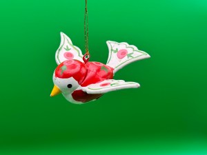 I don’t remember when I got this small (less than 2 inches beak to tail) hand-painted wooden bird, but I know I have had it since I was a little girl. We lived in an adobe house in Albuquerque, New Mexico. It had a big picture window in the living room and we usually put the tree in front of it. I remember my father, who was about 6’4″, would hang the bird at the tip of a high branch so I could imagine it was really flying through the wintry blue sky. Years later, my Mom sent it to me my first Christmas on my own. It was lovely to have a reminder of family and childhood. Over time, it has come to represent the kindness of my father and his recognition of the importance of imagination, and the wisdom of my mother knowing the comfort of the familiar in the midst of new beginnings.