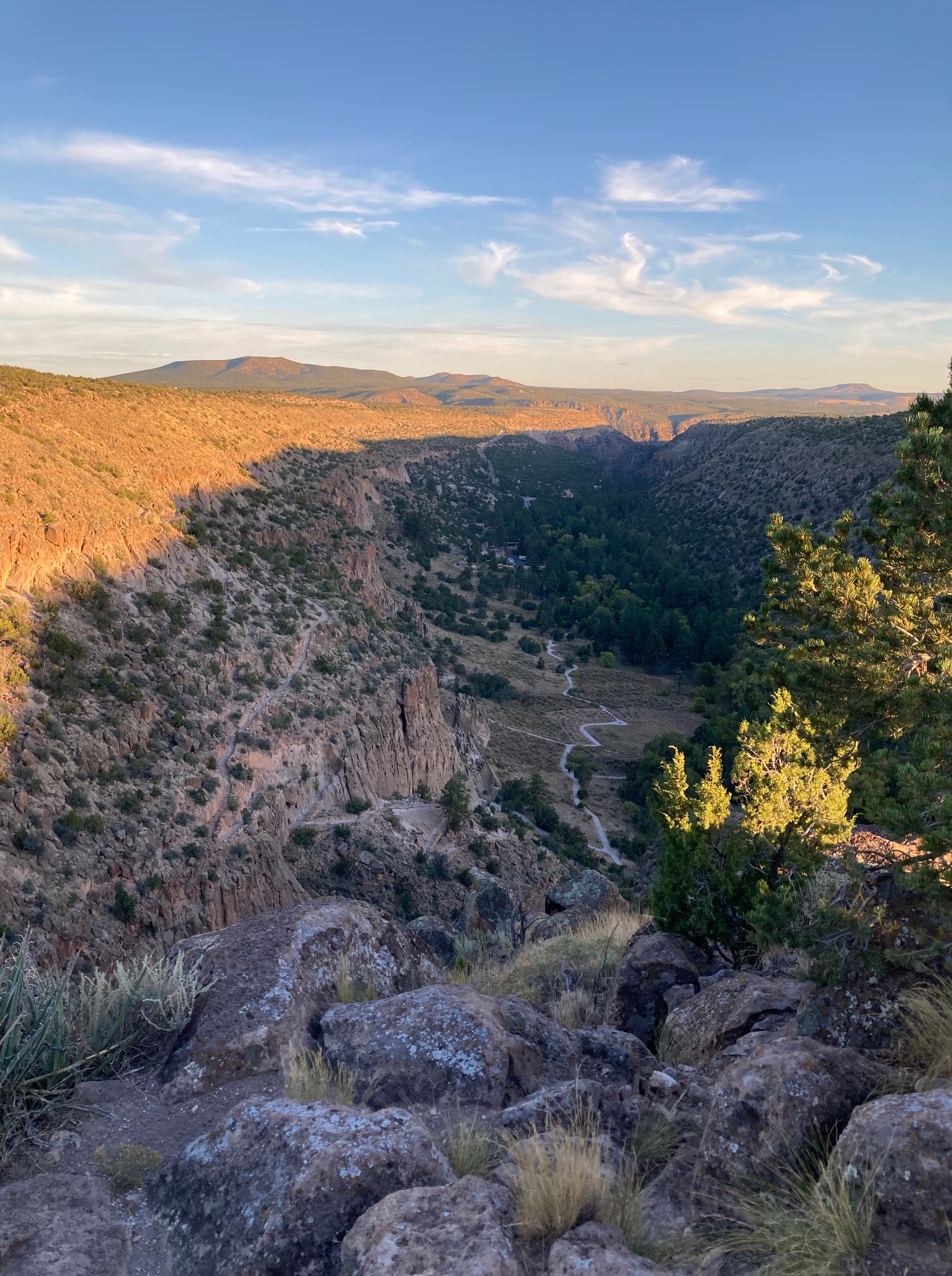 One more chance to hike the Tyuonyi (QU-wee-neh) Overlook Trail, seeing sunset in the canyon from the mesa.