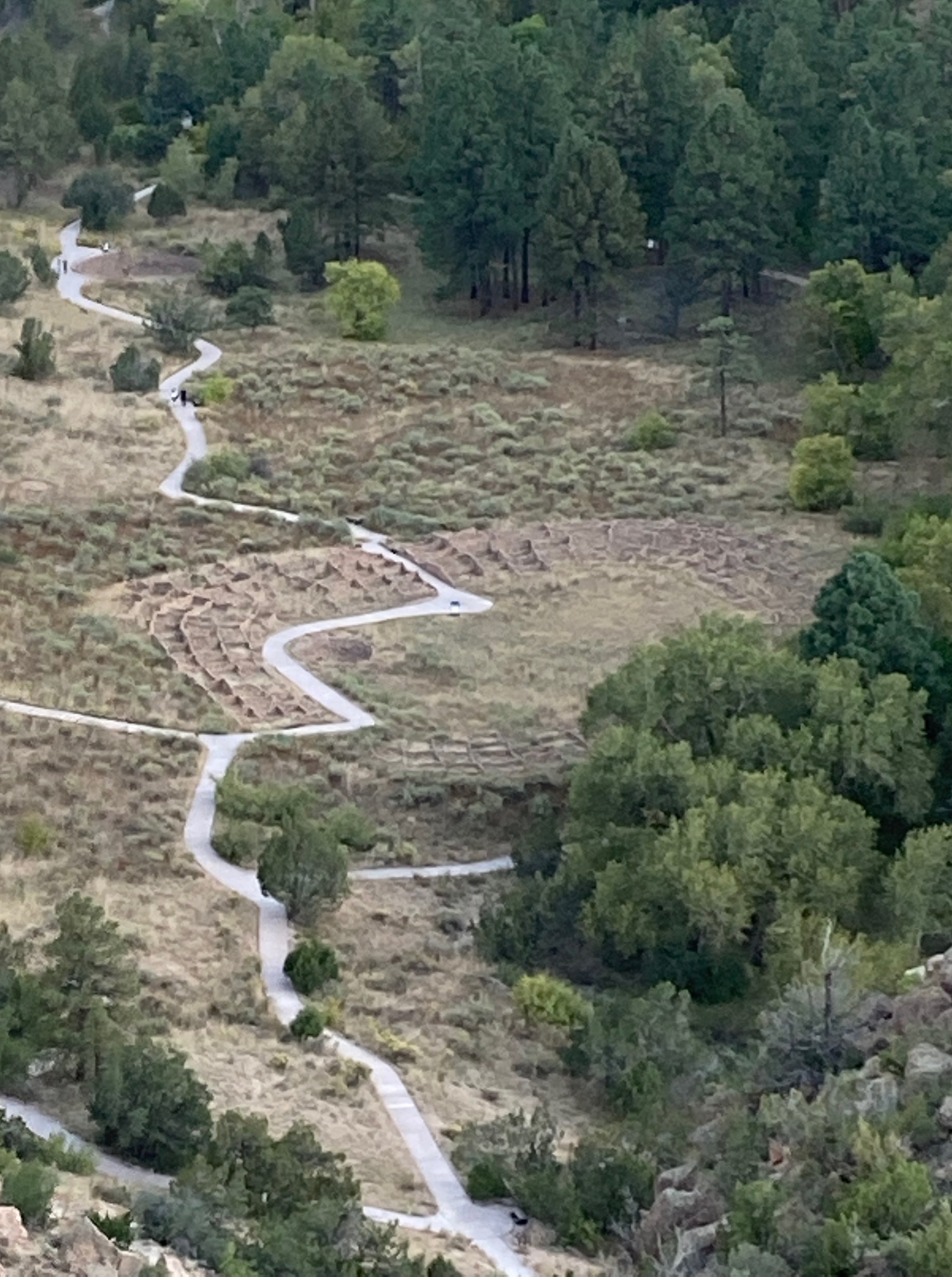 Yesterday was my glorious gift of one more day. I savored sharing this wonderful place with my supportive and patient husband. He came here to keep me company on the long drive home, not realizing that once he was here I was home already…. But, my turn here is done and there will be a new AIR for October who will get to enjoy the cozy comforts of the casita, the marvelous park staff, and the canyon arrayed in fall splendor. I am grateful to Bandelier National Monument for having an Artist-in-Residence program, and for choosing me to be a part of it. I loved my time here. I learned much, gained a keen appreciation for what keeps a park open and welcoming to the public, and appreciate the chance I had to be part of this place.